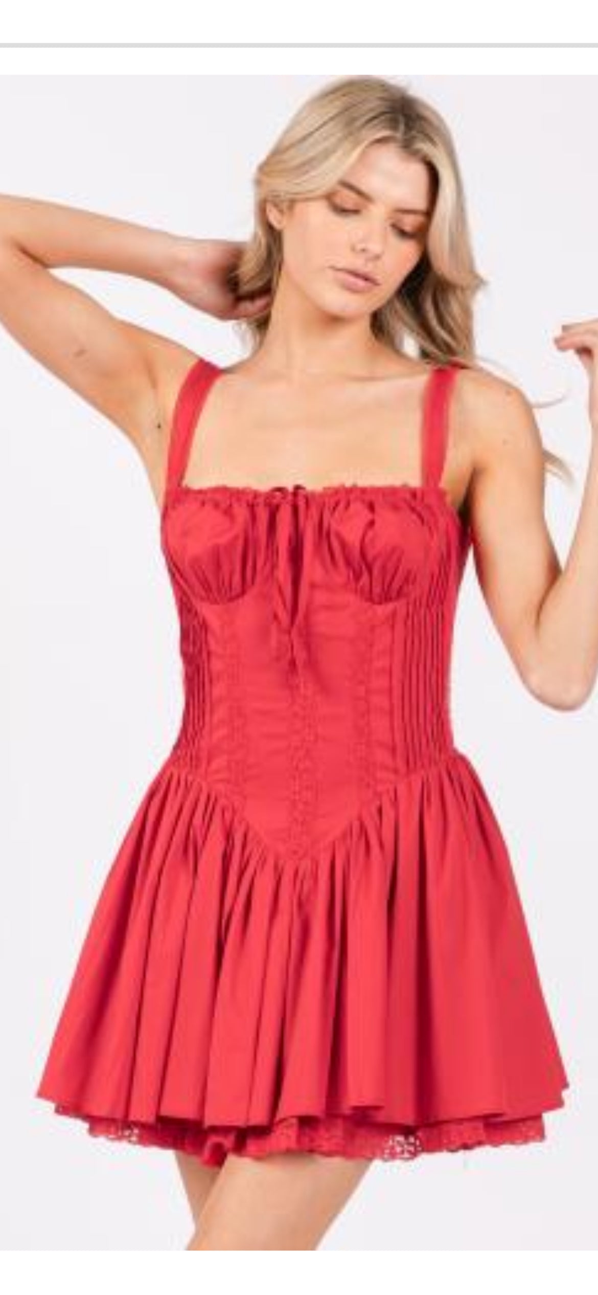 PLEATED LACE DETAIL CORSET MINI DRESS