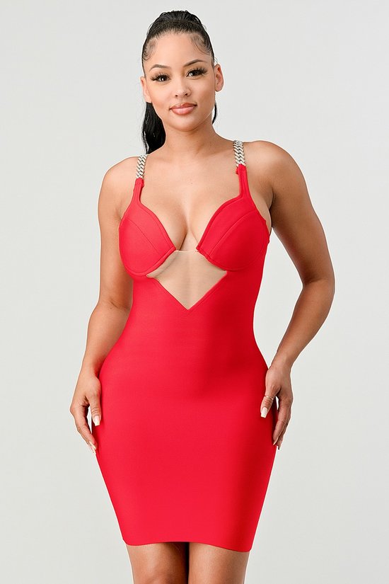 Mini Cup Dress with Adjustable straps and Rhinestones Pattern