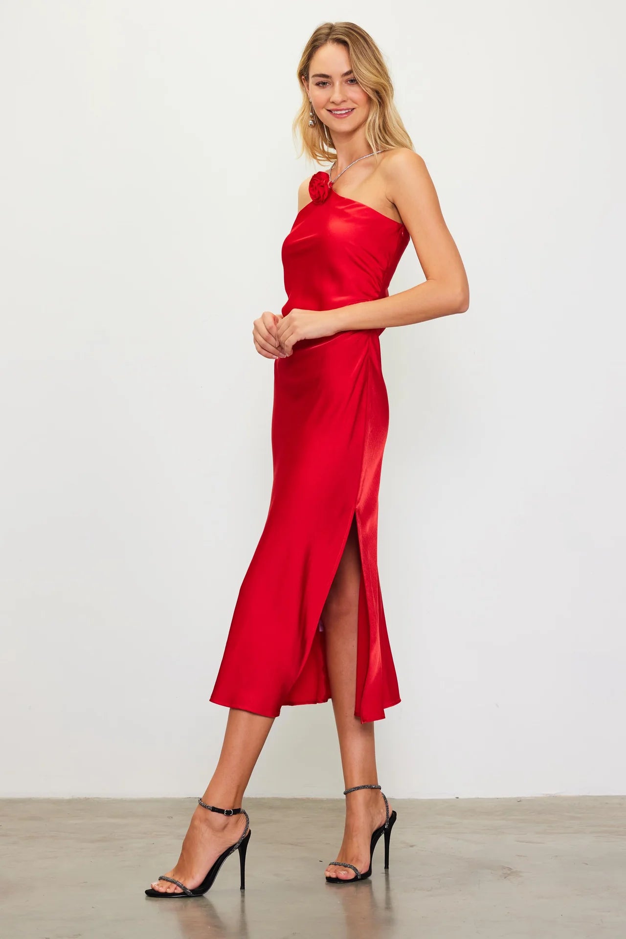 One Shoulder Rhinestones Long Dress