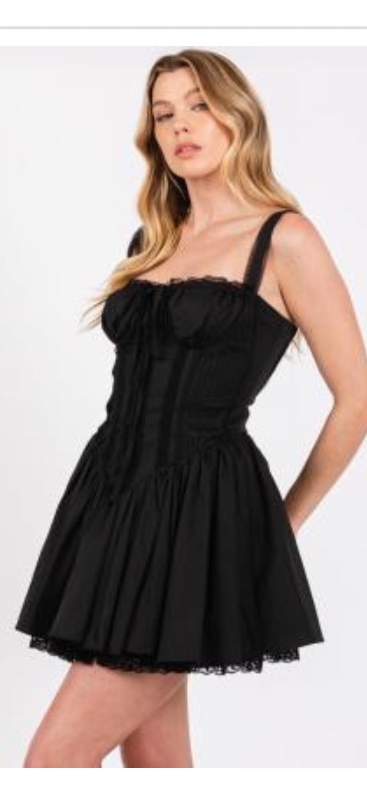 PLEATED LACE DETAIL CORSET MINI DRESS